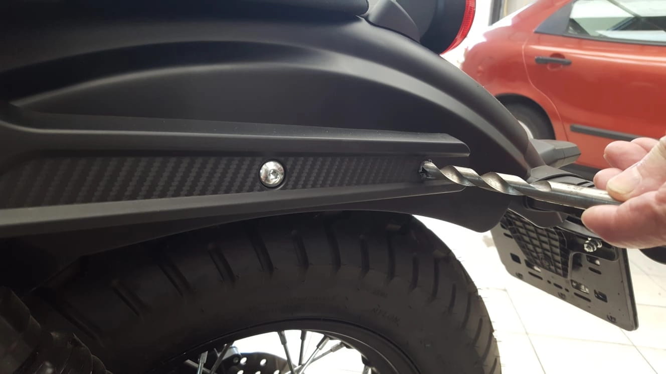 Montaż stelaża wymaga zrobienia dziury w plastiku wiertłem pod nim jest otwór